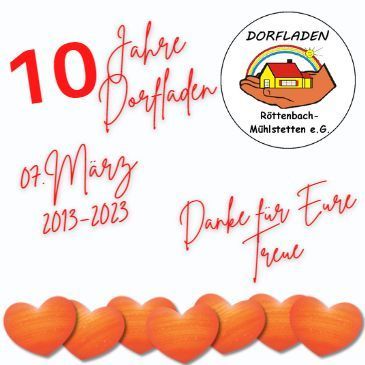 Unser Dorfladen feiert am 07. März seinen 10. Geburtstag. Das wollen wir mit Ihnen in der Woche feiern und uns für Ihre Treue bedanken!