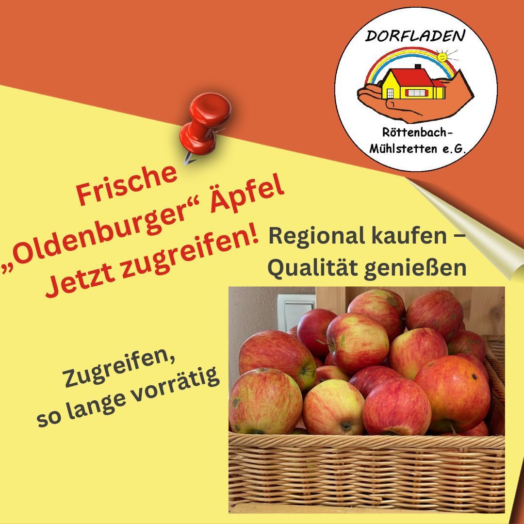 Der Dorfladen Röttenbach-Mühlstetten bietet aktuell eine besondere Apfelsorte an: den „Oldenburger“ . Diese traditionelle Apfelsorte, auch bekannt als „Prinzenapfel“ oder „Roter Herbstkalvill“, stammt ursprünglich aus Norddeutschland und ist besonders im Spätsommer und Herbst beliebt. Die knackigen, saftigen Äpfel zeichnen sich durch ihre charakteristische gelblich-grüne Schale mit roten Streifen aus und bieten einen ausgewogenen, süß-säuerlichen Geschmack.